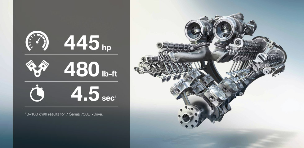 Our flagship luxury sedan features a powerful V8 engine with BMW TwinPower Turbo technology (two TwinScroll Turbochargers, direct injection, Valvetronic, Double-VANOS) and 8-speed steptronic automatic transmission. Experience the unique balance between dynamic sporting capability and luxurious driving comfort.